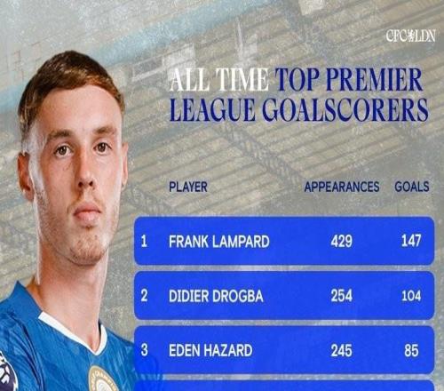 • 39球,帕尔默超越阿内尔卡独占切尔西队史英超射手榜第9位