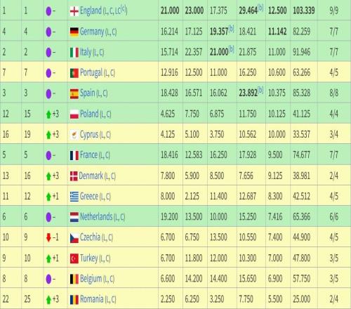 截至北京时间12月11日,25-26赛季至今欧战积分排名已经确定,英超、德甲和意甲分列前三,西甲排名第五法甲仅列第...
