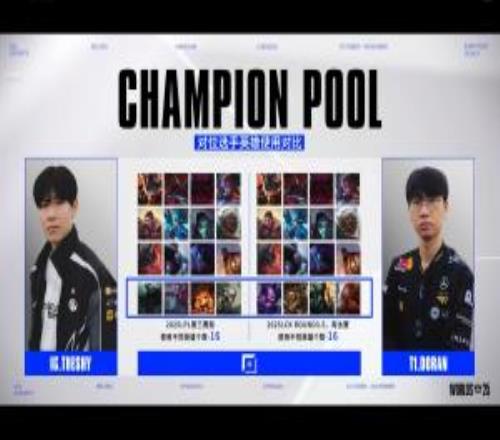 势均力敌iG与T1上单英雄池对比:双方均使用16名英雄,只有4名不同