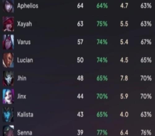 Gumayusi生涯英雄:厄斐琉斯场次最多,卡莎胜率仅36%