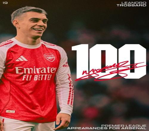 此役客场对阵伯恩利,特罗萨德首发出战,这位比利时边锋迎来阿森纳生涯英超第100场比赛。