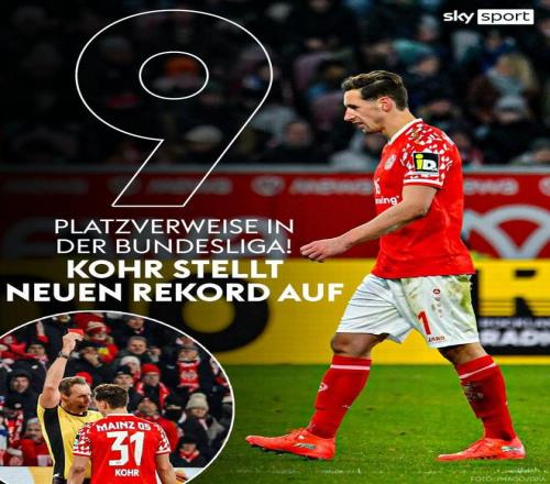 赛后来自德国天空体育的统计指出,多米尼克-科尔本场比赛的严重犯规让他创下了德甲联赛一项并不光彩的纪录,这名现年31岁的德国后卫在自己出战的第316场德甲比赛中吃到了第9张红牌,他也就此超越了诺沃特尼和路易斯-古斯塔沃,成为德甲联赛历史上染红次数最多的球员。