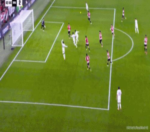第13分钟,皇马后场失误,毕尔巴鄂竞技断球反击,N威廉姆斯断球往前推进后兜传门前,古鲁泽塔点球点处抢点凌空扫射踢飞了。第17分钟,皇马左路快攻,姆巴佩送出精妙直塞,维尼修斯插上突入禁区获得小角度半单刀良机,只是他没有射门,想着横传做饼,被回防球员将球挡出底线。第25分钟,毕尔巴鄂竞技4分钟内两次左侧制造杀机,古鲁泽塔和贝伦格尔都获得超近距离良机,只不过他们的大力推射都被库尔图瓦奋勇扑出。