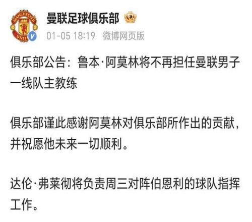 其中提到,「鉴于曼联目前在英超联赛中排名第6,俱乐部管理层经过慎重考虑,认为现在是做出改变的合适时机,此举将使球队有最大可能取得更高的英超联赛排名。」