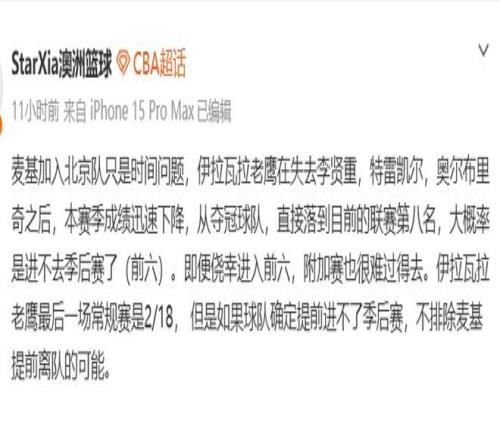 第二个好消息——麦考尔有望提前复出