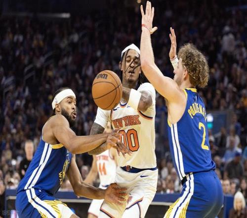 下半场易边再战,第三节上来库里外线三分来感觉了,连续命中。尼克斯则是频频冲击篮筐,穆迪三分再中,勇士一波13-2的小高潮将分差拉开,尼克斯暂停。暂停以后,唐斯三分止血,但追梦和巴特勒连续罚球,穆迪三分再中,勇士一直保持着10分左右的领先优势。巴特勒最后一攻又强硬打进,三节结束勇士99-87领先12分。